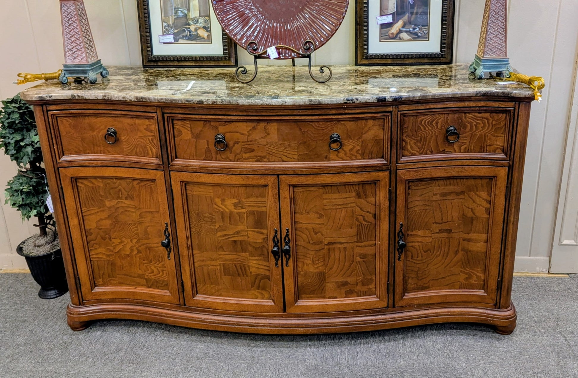 LARGE MEDIUM WOOD BUFFET WITH FAUX MARBLE TOP