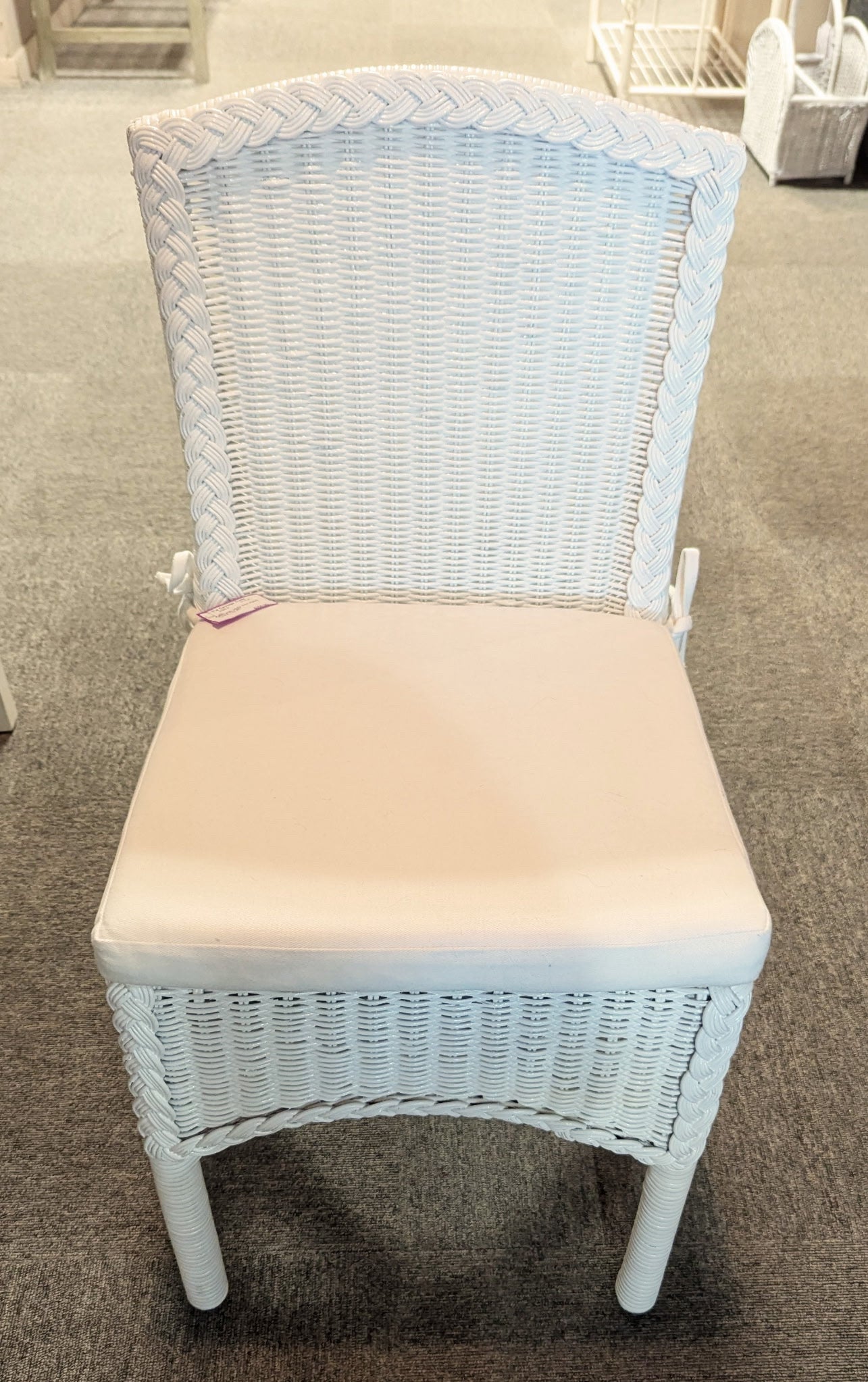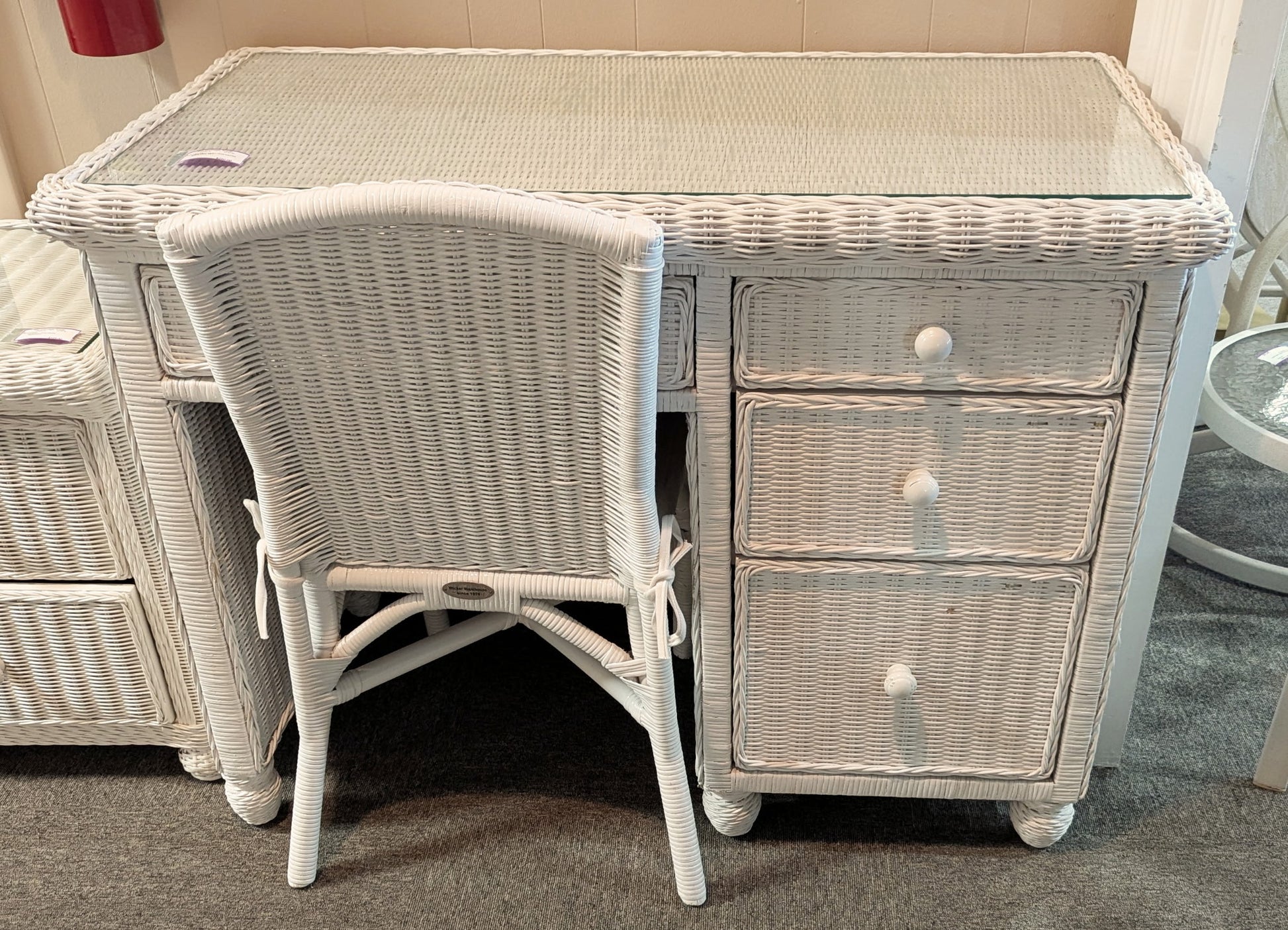 SET WHITE WICKER DESK WITH GLASS TOP AND CHAIR
