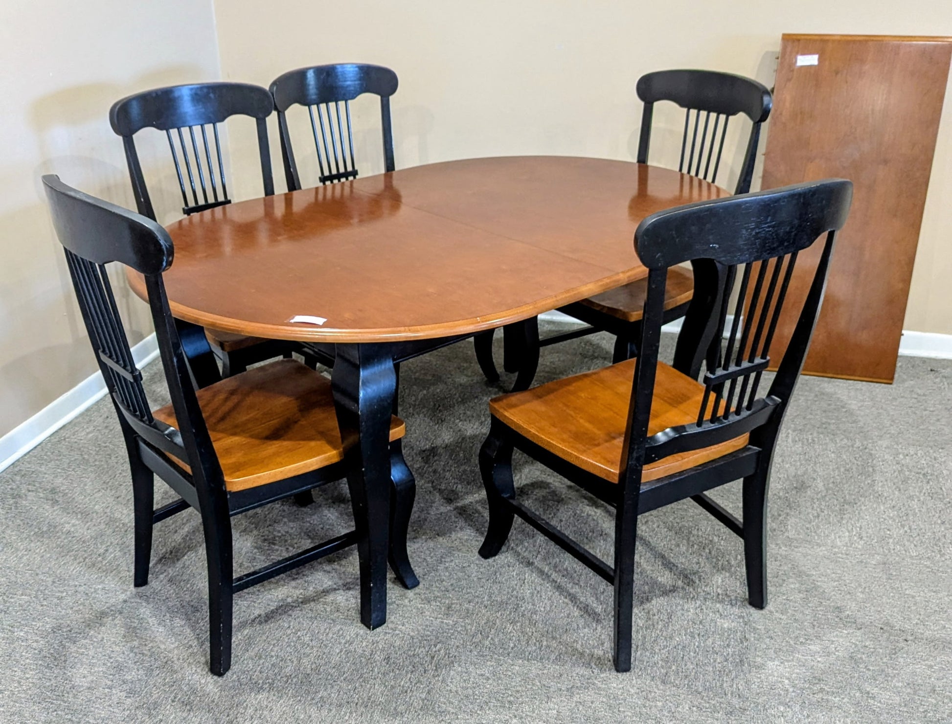 TWO-TONE DINING TABLE WITH ONE LEAF AND FIVE CHAIRS