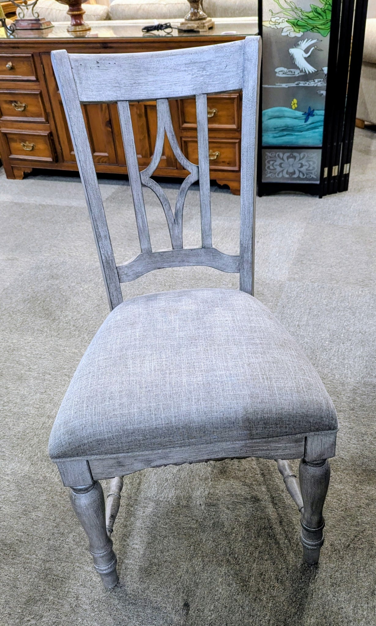 PLYMOUTH TWO-TONE GRAY AND BROWN RECTANGLE DINING TABLE WITH TWO LEAVES AND SIX CHAIRS