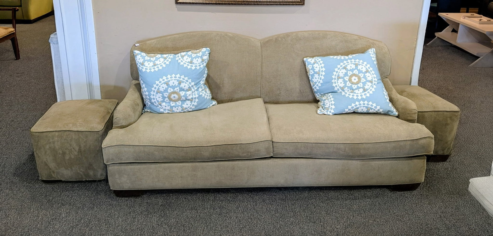 LIGHT BROWN FABRIC SOFA WITH TWO OTTOMANS