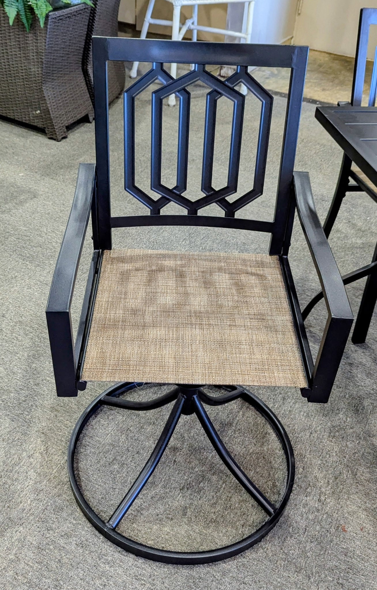 RECTANGLE METAL PATIO TABLE WITH SIX CHAIRS.