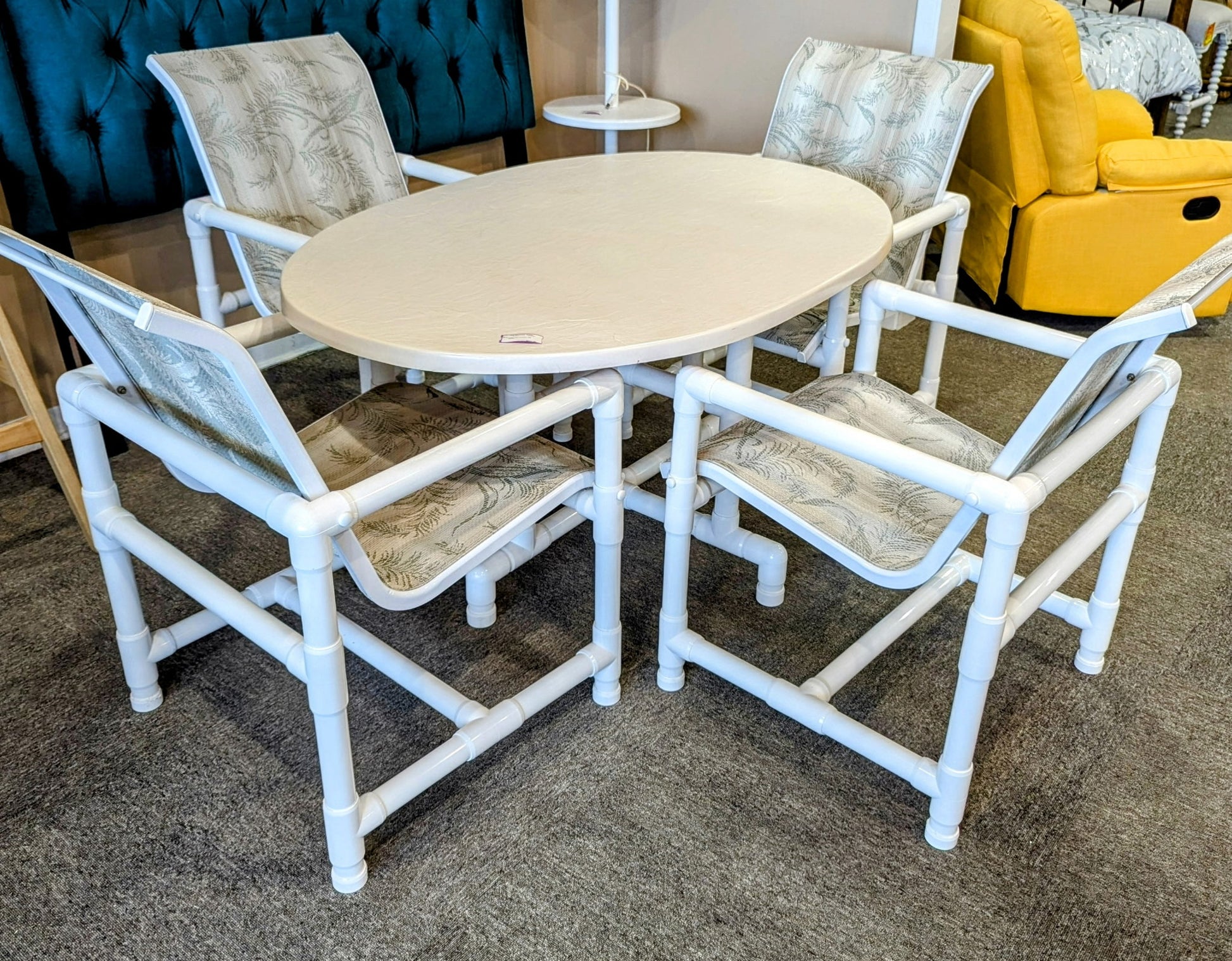 WHITE PVC OVAL TABLE WITH FOUR CHAIRS